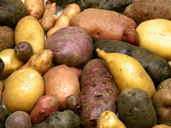 Unsere ersten Anbauversuche begannen wir 2004 mit einzelnen historischen Sorten, von denen uns teilweise nur zwei bis drei Knollen je Sorte zur Verfügung standen. Dementsprechend klein und überschaubar war die Anbaufläche. Seit unserem ersten Anbaujahr sind wir aber jedes Jahr aufs Neue von den enormen Sortenunterschieden fasziniert – solch eine botanische Vielfalt ist einfach verblüffend! So erstrahlen die Kartoffelblüten in den unterschiedlichsten Farben (weiß, violett, blau, lila und rosa) und die Knollenformen und –farben weichen z.T. sehr stark von den heutigen modernen Sorten ab. Aber auch Reifezeitpunkt, Stärkegehalt oder Geschmack sind von Sorte zu Sorte sehr unterschiedlich.