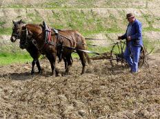 Wahrend wir anfänglich alle Arbeiten, vom Legen bis zur Ernte, mit der Unterstützung von Freunden per Hand erledigten konnten, haben wir uns zwischenzeitlich die Arbeit in kleinen Mechanisierungsschritten etwas erleichtert. Anfangs war es für die Ernte lediglich ein Pferd und eine Kartoffelschleuder unseres Nachbars. Heute verfügen wir über eine halbautomatische Legemaschine und einen Schwingsiebroder, der uns die Knollen zur Ernte aus dem Damm hebt und abgesiebt als Schwad auf dem Boden ablegt.
