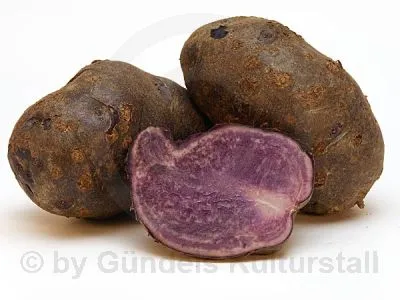 Bemerkungen: | Die für die blaue Färbung verantwortlichen Stoffe der blauen Kartoffeln sind die sogenannten Anthocyane. Diesen Farbstoffen werden krebs- und entzündungshemmende Wirkung im menschlichen Körper nachgesagt und sollen den Alterungsprozess verlangsamen. KARTOFFEL DES JAHRES 2006 |
