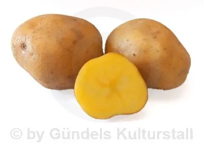 | Schale: | glatt bis genetzt, gelb mit flachen Augen | |